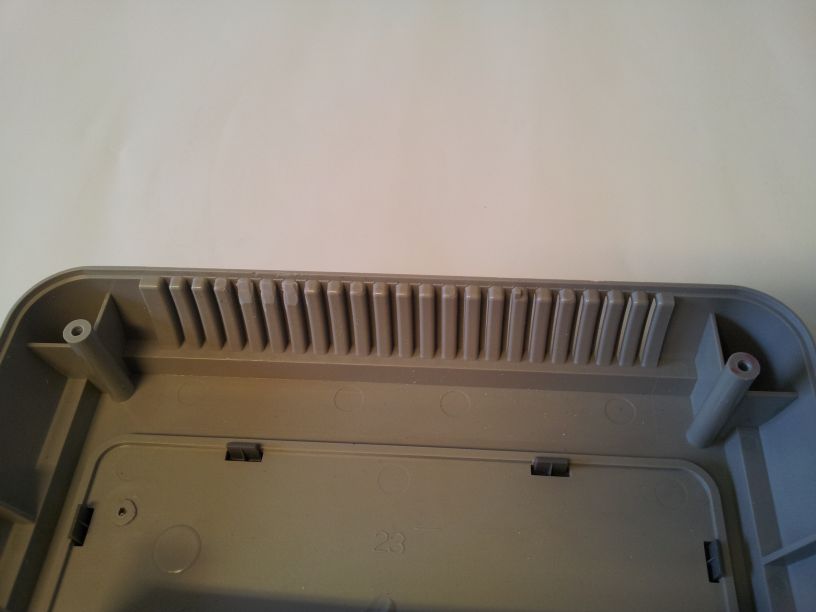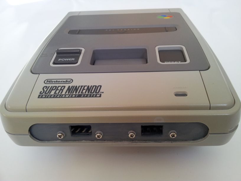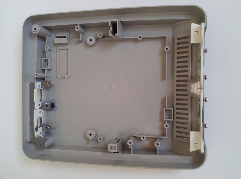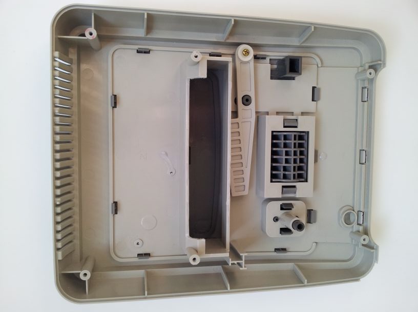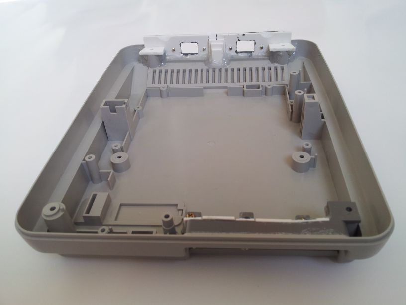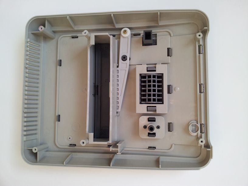 Für eine Passform müssen drei Rippen innen an der Rückseite der oberen SNES-Gehäusehälfte abgefeilt werden. Der Koppler muss ebenfalls bearbeitet werden, damit beide Gehäusehälften aufeinanderpassen. Stellenweise erfolgt eine Abtragung vom Kopplergehäuse.