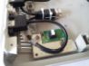 Schlussendlich wird der Modulkoppler an der Innenseite der unteren Gehäusehälfte angeschraubt. Aus Stabilitätsgründen werden wieder Unterlegscheiben benutzt. Der Koppler wird mit Plastikklebstoff auf den Sockel geklebt, zusätzlich wird er mit Heißkleber stabilisiert.