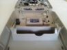 Beachte auch, wie die Auswurftaste mit Heißkleber fixiert wurde. Zu sehen sind auch die runde, dunkelgraue Säule, welche den Reset-Taster drückt, sowie die rechteckige, dunkelgraue Säule, welche den Ein-Aus-Schalter verschiebt. An den obenstehenden Fotos kann man gut erkennen, wie der Modulschacht angefräst worden ist, um Platz für das Innenleben zu schaffen.